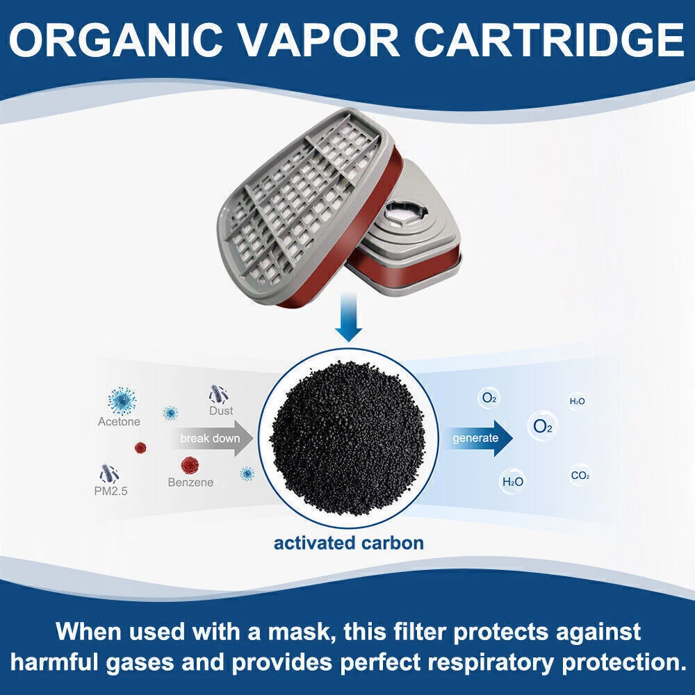 Maximum Safety: Face cover offers a professional solution with the system of particle filters capable of blocking almost 100% of organic gases, smoke, dust, pollen and other particles in the air. Cotton filters and cartridges are replaceable to give a long working life.